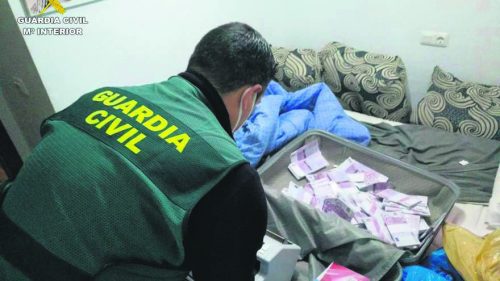 Guardia Civil in Torrevieja have arrested four people aged between 30 and 47 years old and all members of the same family, for defrauding €50,000 euros through a scam known as a ‘rip deal’. During a series of searches as part of the operation, officers seized more than one and a half million euro in false €500 notes, €2,600 in genuine notes, a number of high-end watches and jewellery, two money counting machines, two printing machines, a large amount of mobile phones and mobile phone cards as well as handwritten notes with contact details of potential victims.
