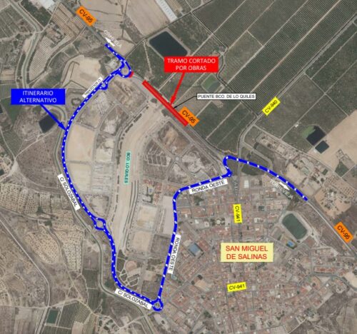Emergency reconstruction works are set to stary today, Tuesday 16th April, on the Lo Quiles bridge over the Rambla de Lo Quiles, located along the CV-95 between San Miguel de Salinas and Orihuela.