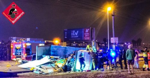A traffic accident on the CV-95 in front of Torrevieja Hospital left two people injured and the road closed for hours, after a truck and a car collided and overturned at 6.45am on Saturday morning. Fire-fighters were called to the scene and had to cut the truck driver out of the cab.